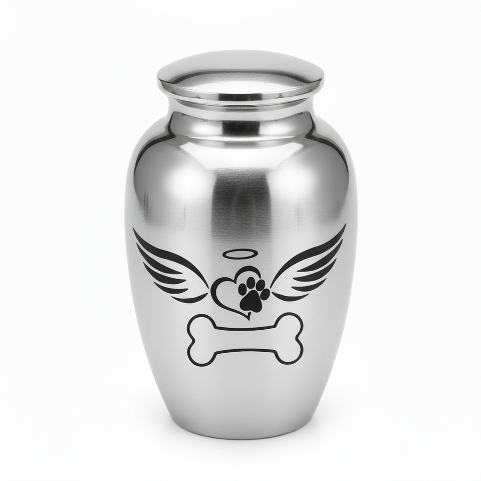โกศสัตว์เลี้ยงสแตนเลสสตีลทันสมัยแบบขายส่ง เป็นมิตรกับสิ่งแวดล้อม สำหรับใส่เถ้ากระดูกสุนัข ดีไซน์สวยงาม