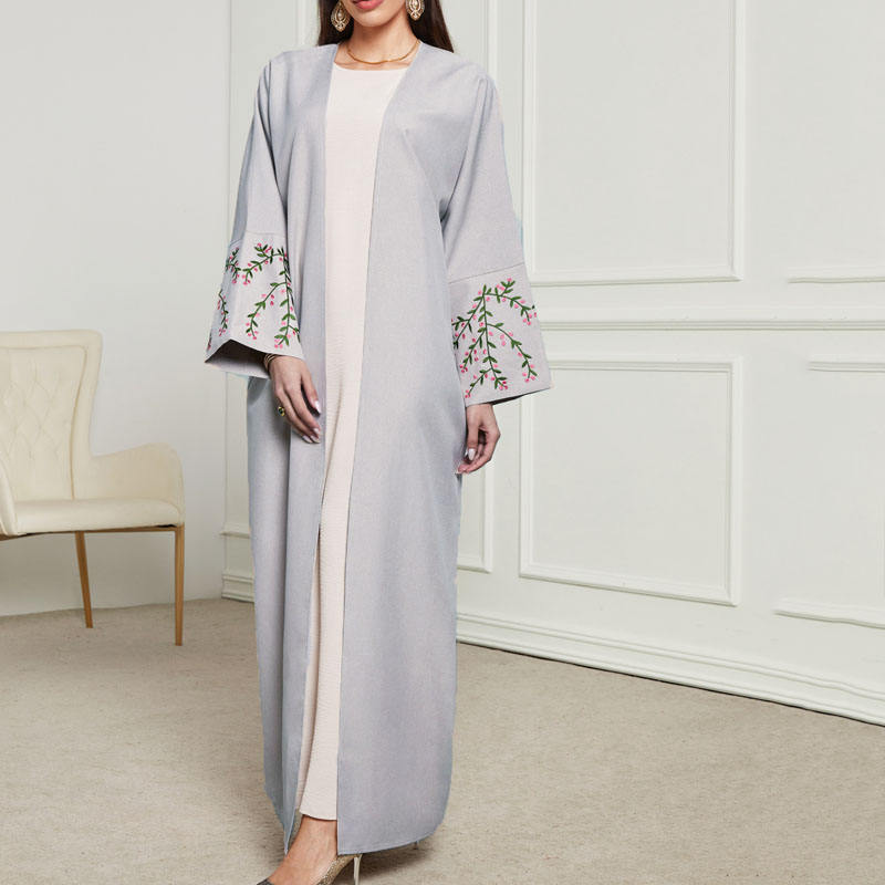 เดรสอาบายาแบบเรียบง่ายระบายอากาศได้เสื้อคลุมมุสลิมแบบดั้งเดิมแขนปักลายลำลอง