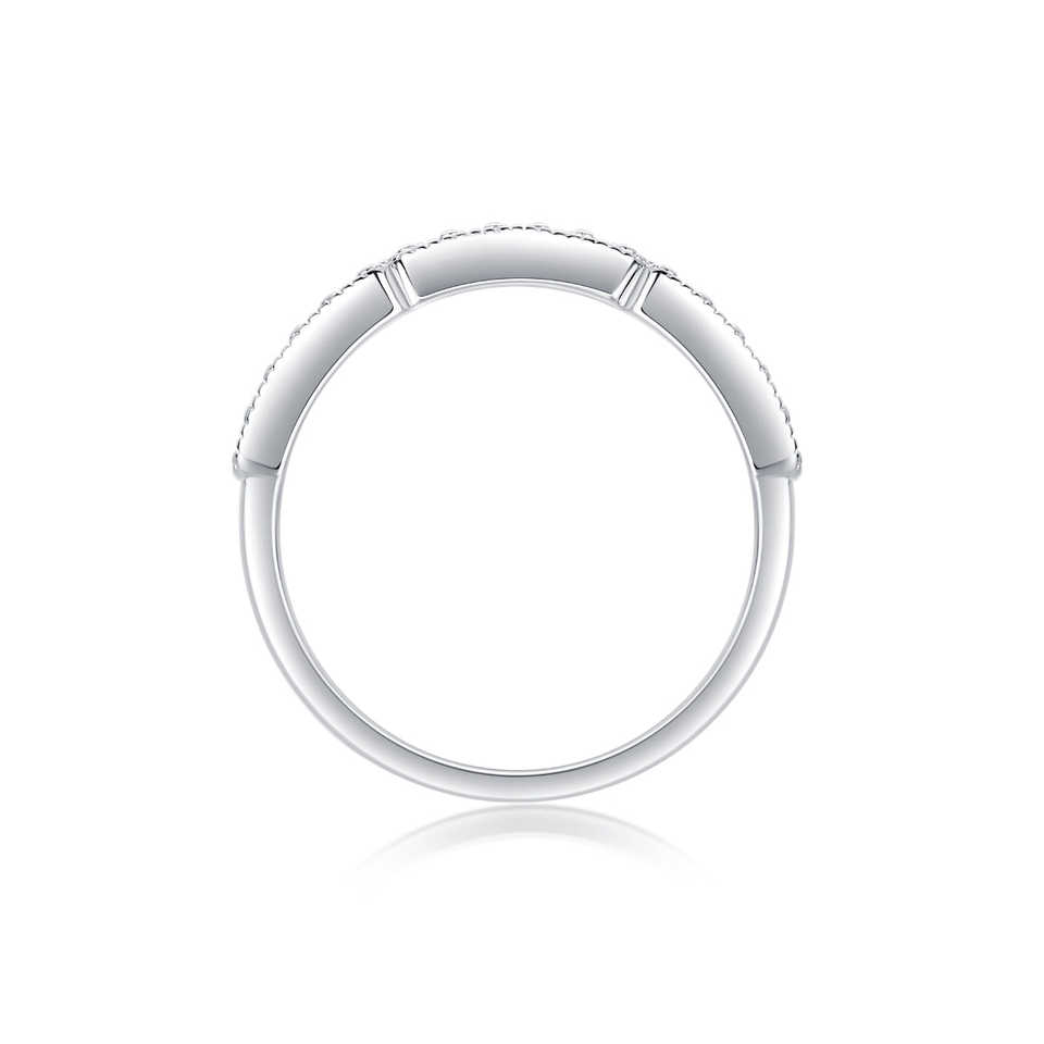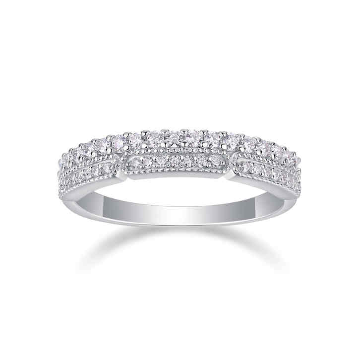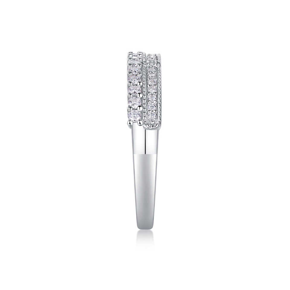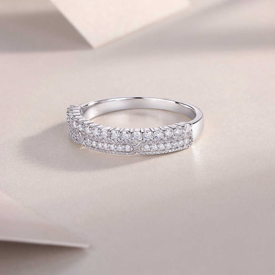 แหวนหมั้นเพชรโมอิสซาไนต์ทรงกลมสองแถวเงินแท้ 925 ประดับเพชรแบบหนามเตย ได้รับการรับรองจาก GRA สำหรับผู้หญิง