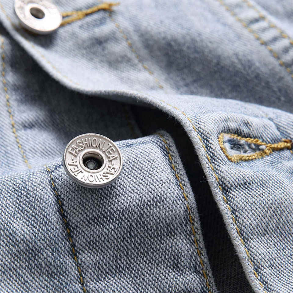 เสื้อแจ็คเก็ตยีนส์ผู้ชาย สไตล์ขายส่งยอดนิยม รุ่นใหม่ล่าสุด แฟชั่นสตรีทแวร์สุดฮิต ดีไซน์ขาดๆ