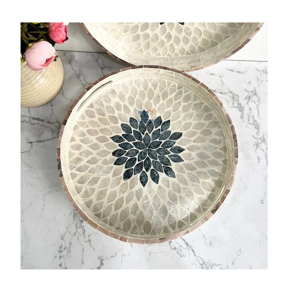 ถาดเสิร์ฟอาหารลายดอกไม้ประดับมุก