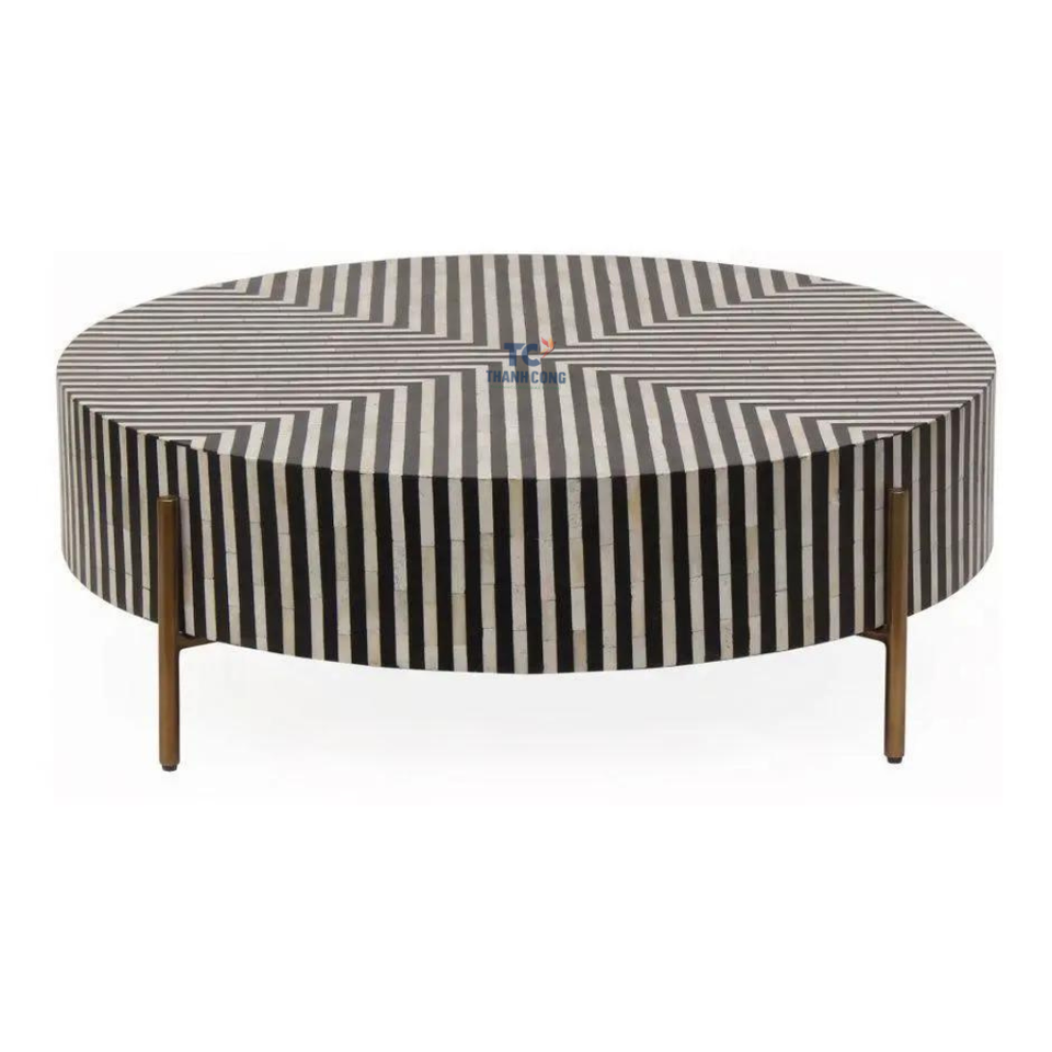 โต๊ะกาแฟฝังมุกพร้อมขาตั้งสเตนเลสเฟอร์นิเจอร์โรงแรม