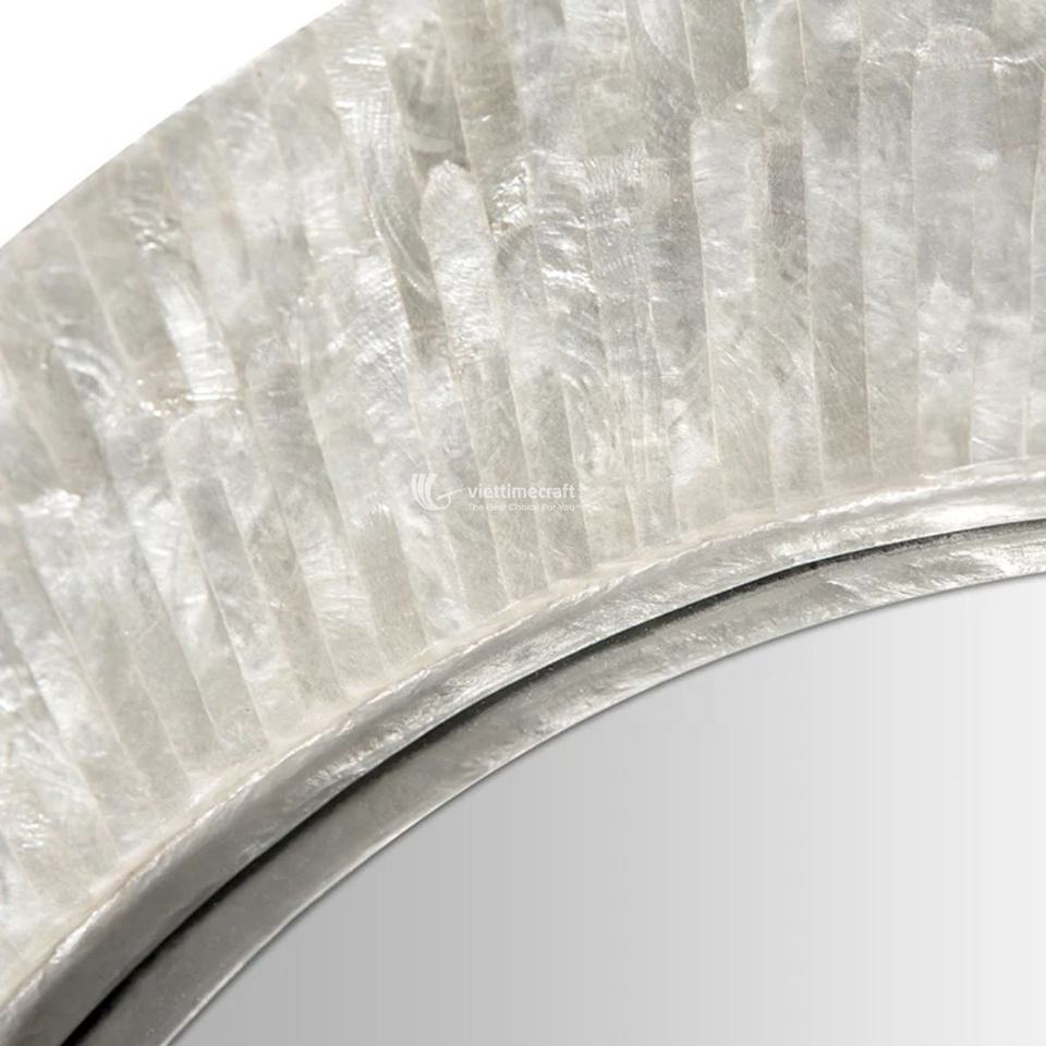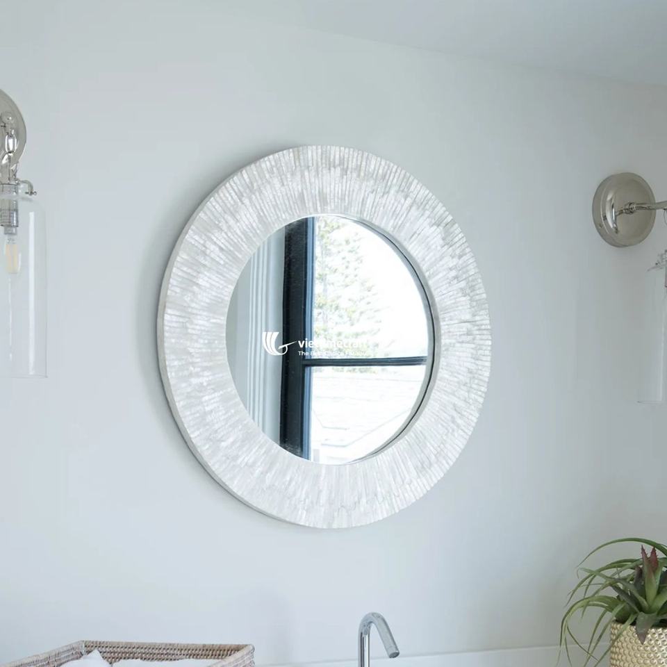 กระจกติดผนังฝังมุกทำมือแบบขายส่ง เป็นมิตรกับสิ่งแวดล้อม กระจกตกแต่งกรอบเปลือกหอยสุดหรู สำหรับล็อบบี้โรงแรมและห้องนั่งเล่น