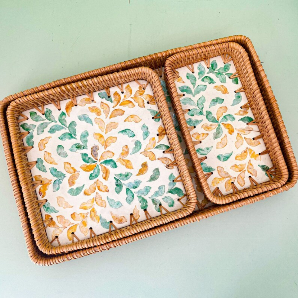 ชุดถาดหวายเสิร์ฟทรงสี่เหลี่ยมและสี่เหลี่ยม