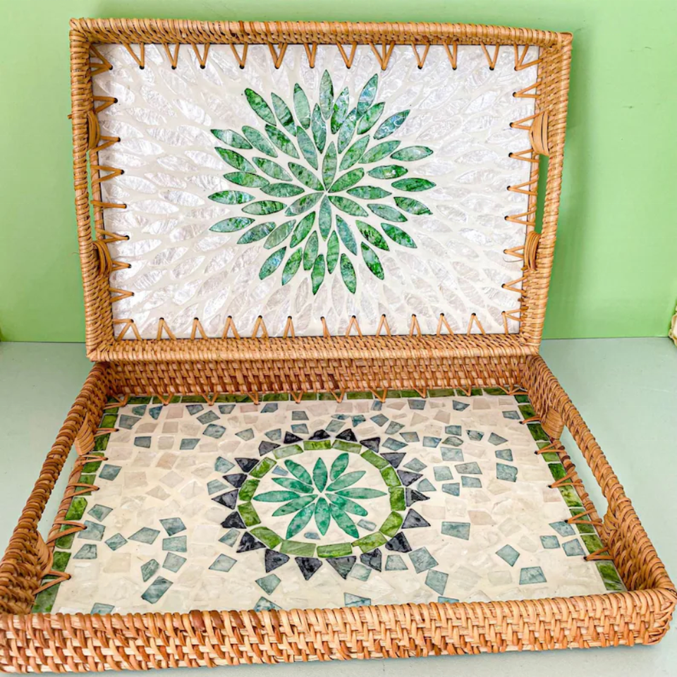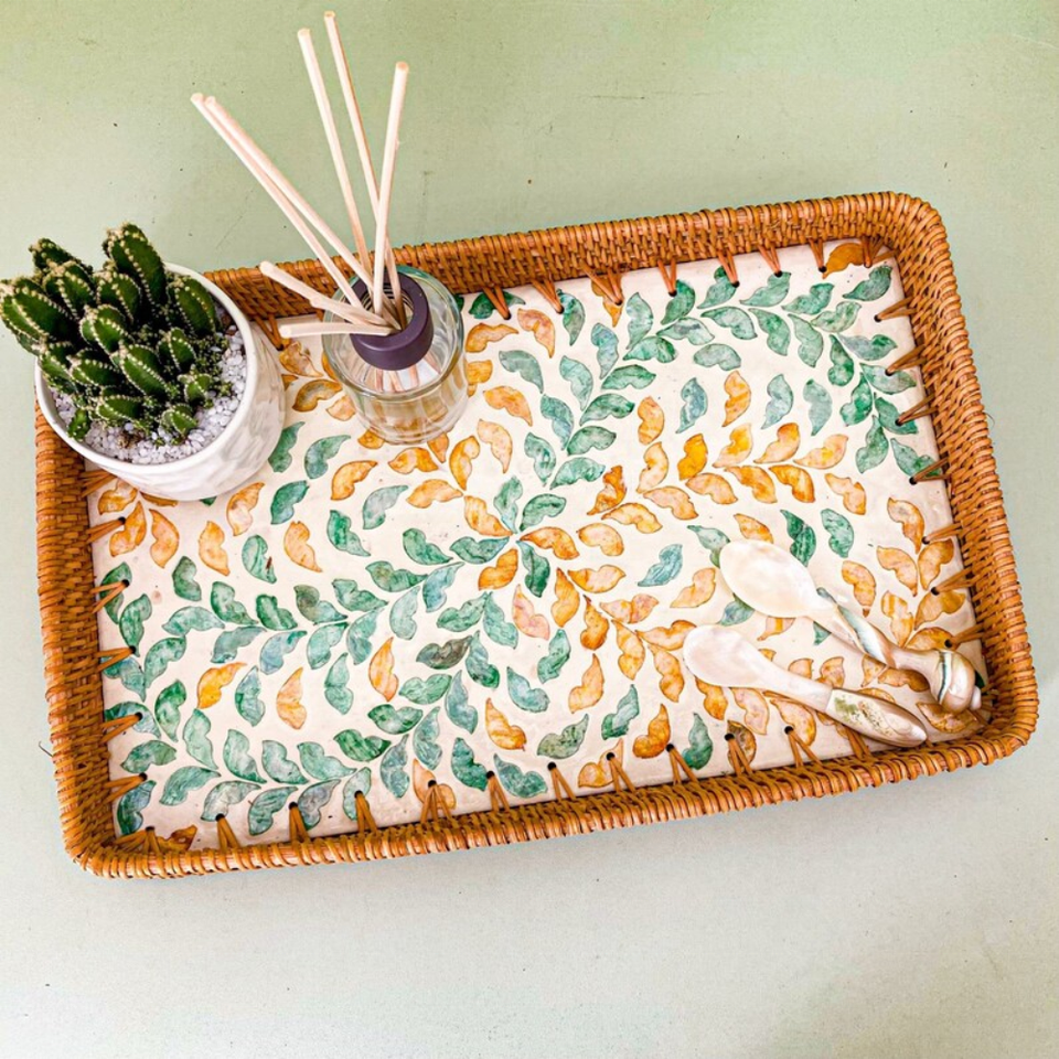 ชุดถาดรองหวายทรงสี่เหลี่ยมและสี่เหลี่ยมลายดอกไม้งานทอมือทำจากเวียดนาม