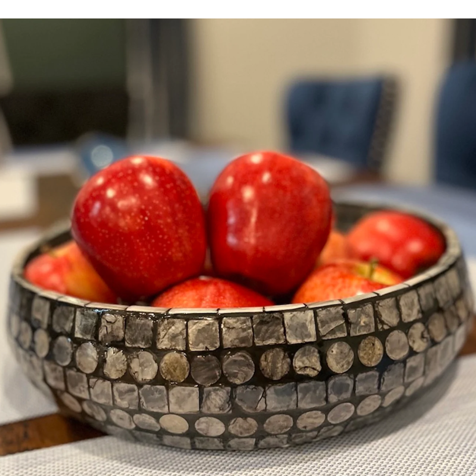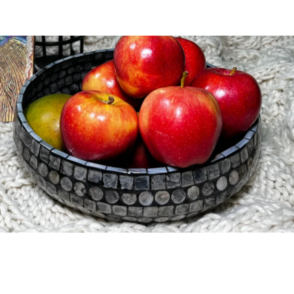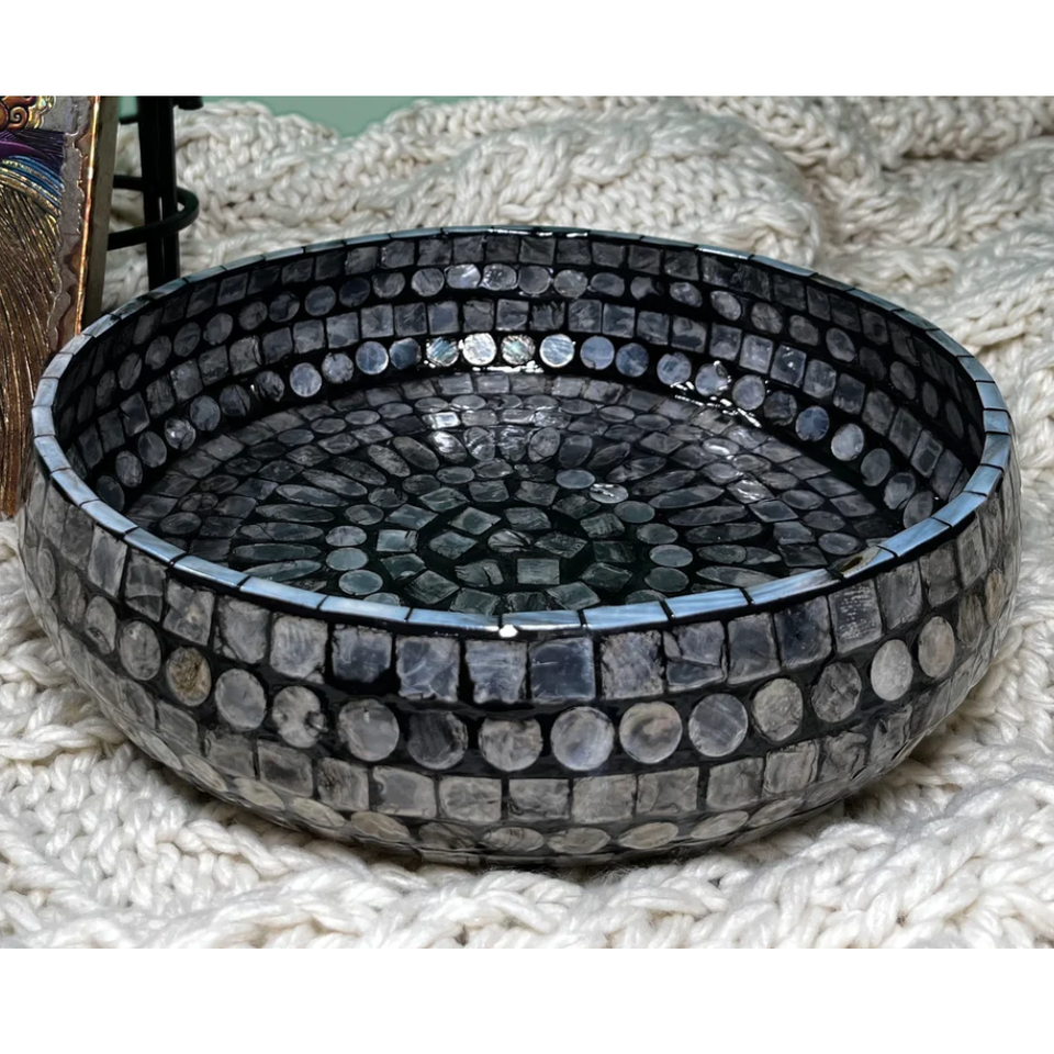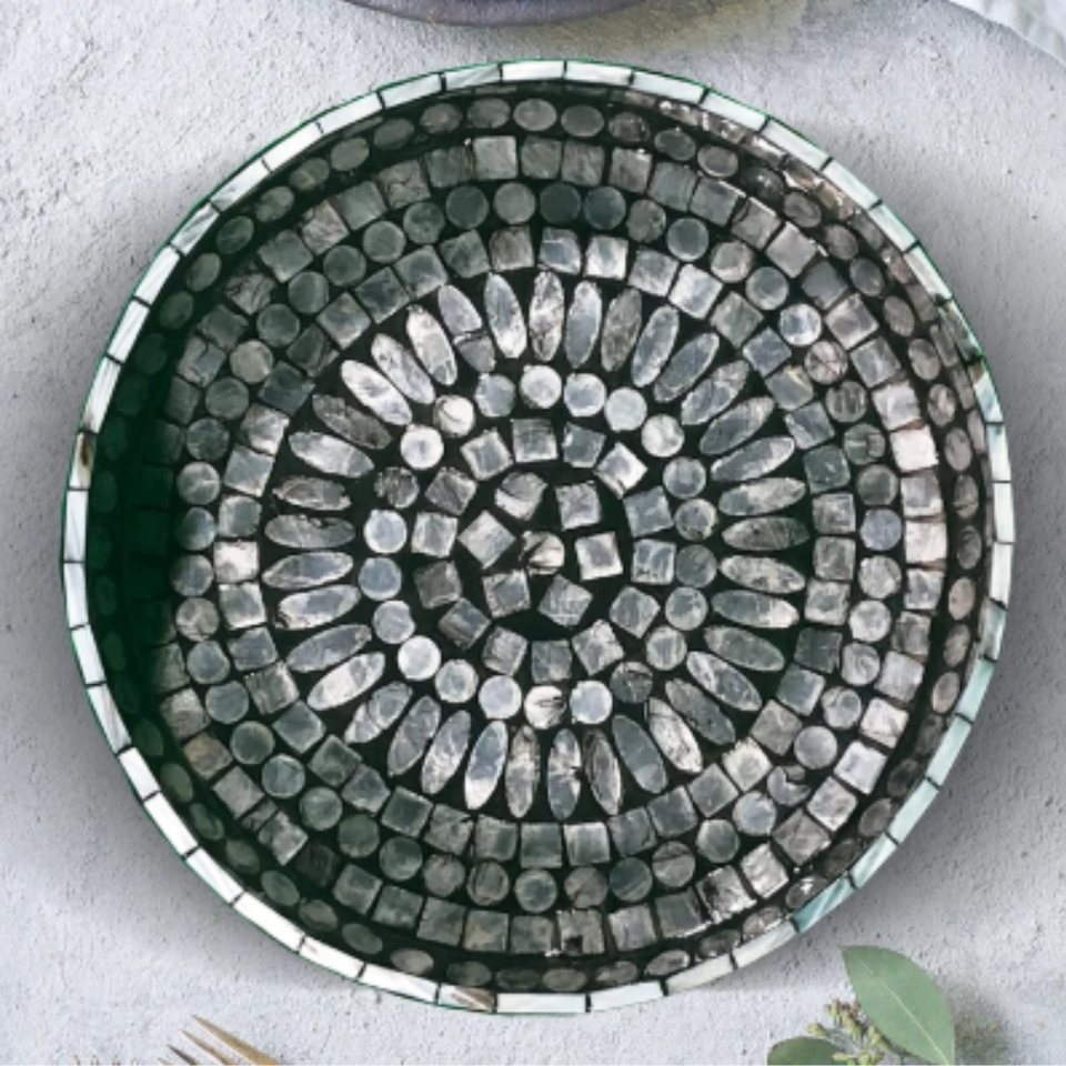 ถาดใส่ขนมมุกแบบโค้งสำหรับตกแต่งชามผลไม้งานแฮนด์เมดเทรนด์ร้อนจากเวียดนามถาดใส่แล็กเกอร์ฝังสีดำ