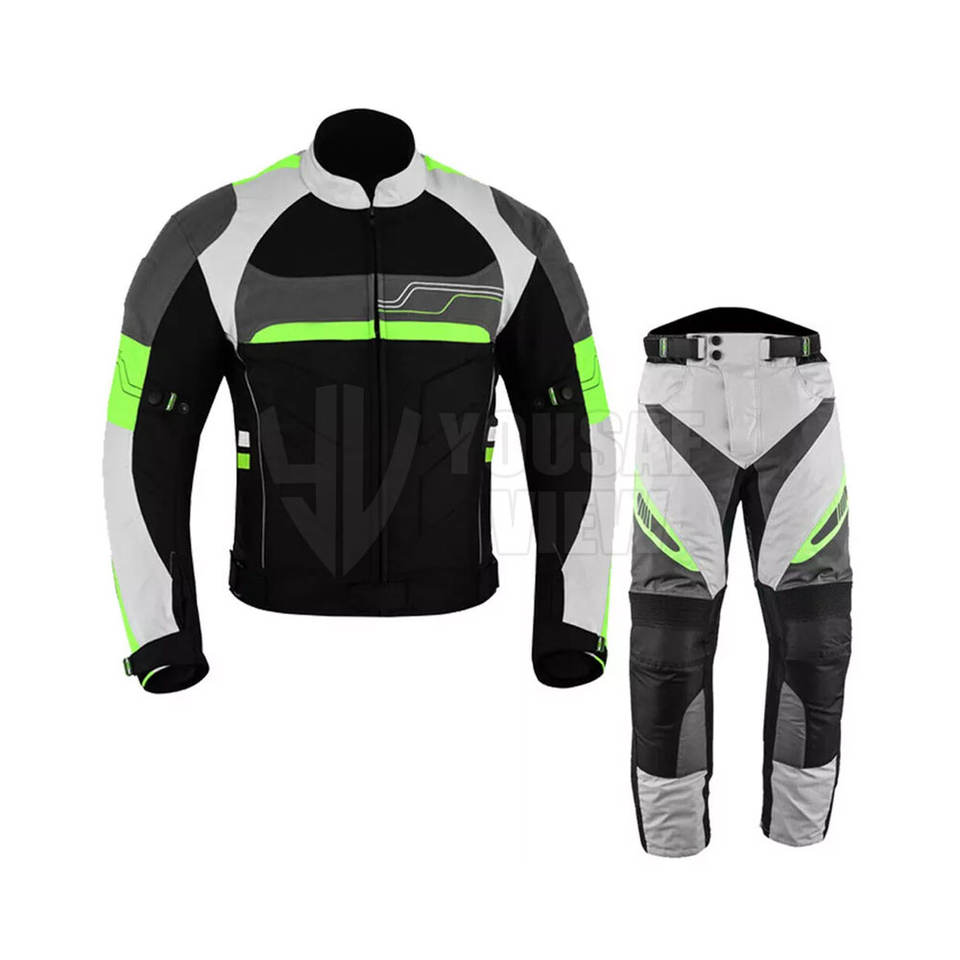 เสื้อแจ็กเก็ตคอร์ดูร่าโพลีเอสเตอร์สำหรับแข่งรถจักรยานยนต์แห้งเร็วระบายอากาศได้ดีดีไซน์ใหม่
