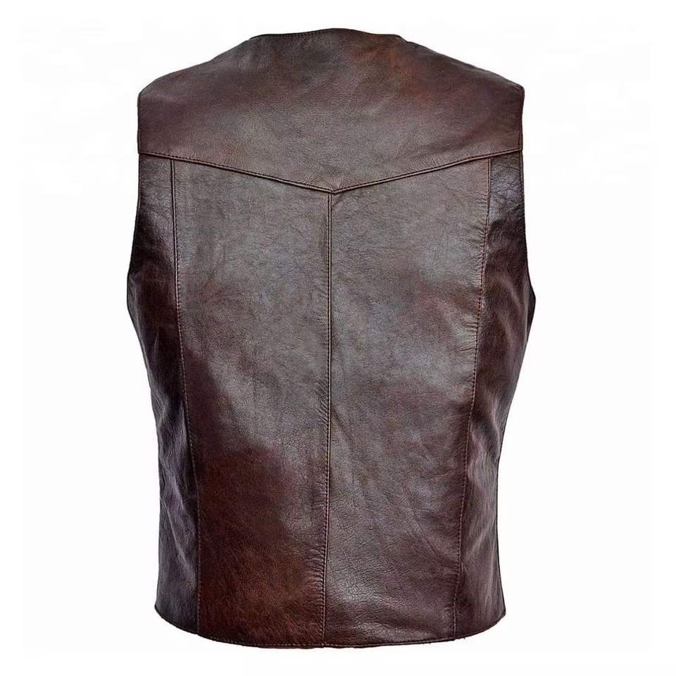 เสื้อกั๊กมอเตอร์ไซค์ขายส่ง แบบกำหนดเองสำหรับผู้ชาย หนังวัวแท้ เกรด A เสื้อกั๊กหนังสำหรับขี่มอเตอร์ไซค์ เสื้อกั๊กหนังสำหรับนักขี่มอเตอร์ไซค์