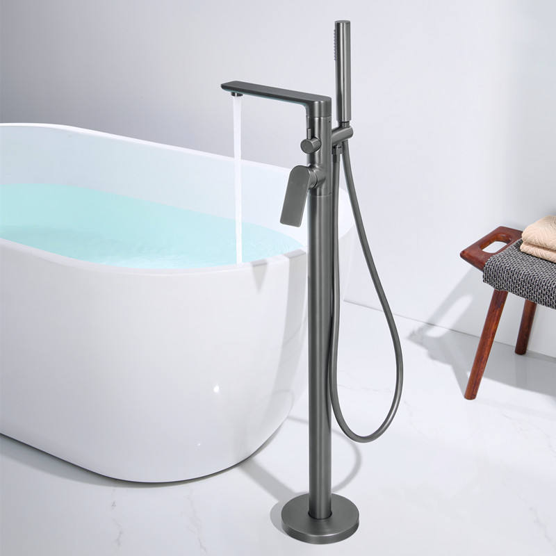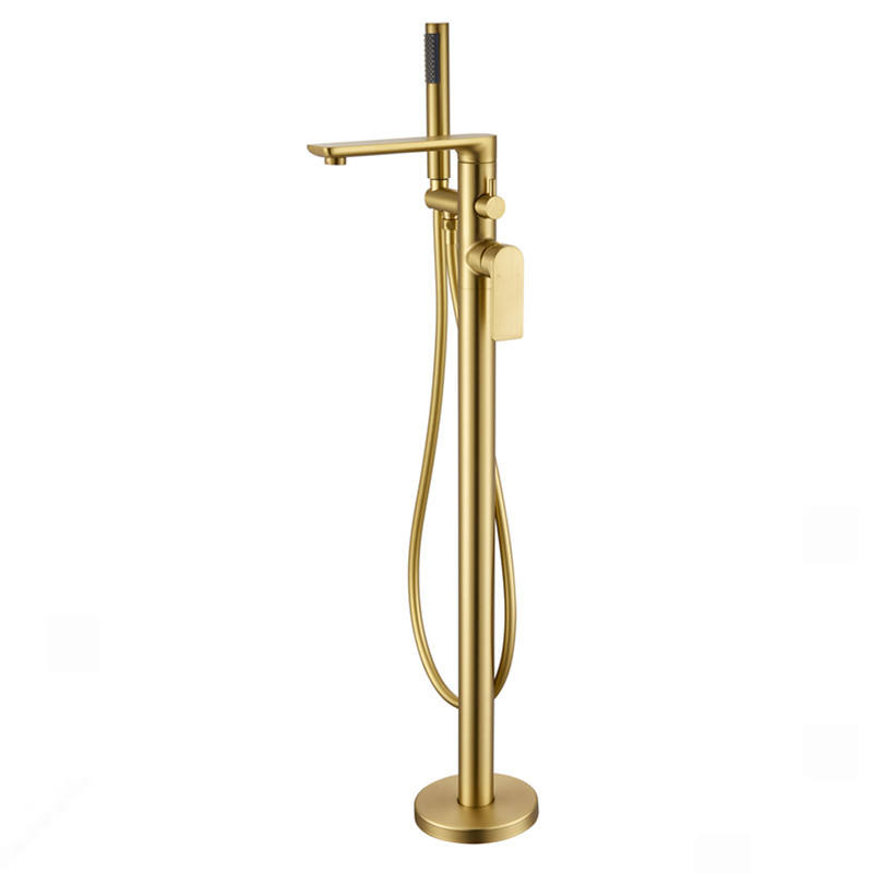 ชุดฝักบัวอาบน้ำแบบติดพื้นทองเหลืองแท้ สไตล์ยุโรปเรียบง่ายทันสมัย ยี่ห้อ Muku สำหรับอ่างอาบน้ำ พร้อมก๊อกน้ำร้อน/น้ำเย็น ฝักบัวแยกอิสระ 1 รู