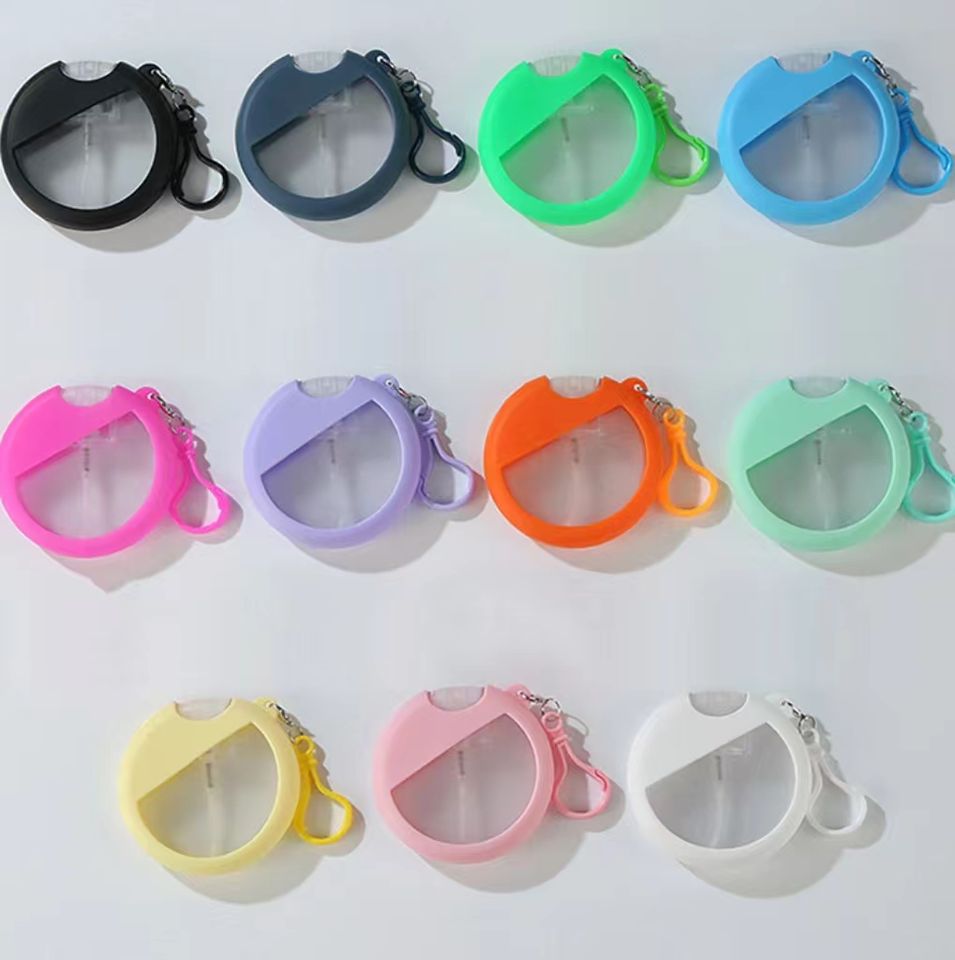 ขวดสเปรย์ทรงกลม25มล. พร้อมปลอกซิลิโคนหลากสีและขวดพลาสติกพวงกุญแจ
