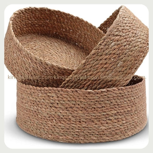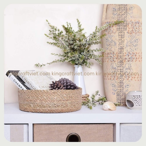 ตะกร้าหวายจากหญ้าทะเลอเนกประสงค์ตะกร้าสำหรับเย็บผ้าซิกแซกจากเวียดนาม