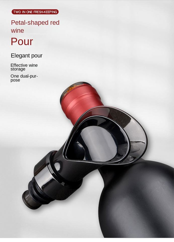 จุกปิดขวดไวน์พลาสติกอเนกประสงค์รูปกลีบดอกไม้ สำหรับเก็บไวน์และรินไวน์ 2-in-1 ขายส่ง