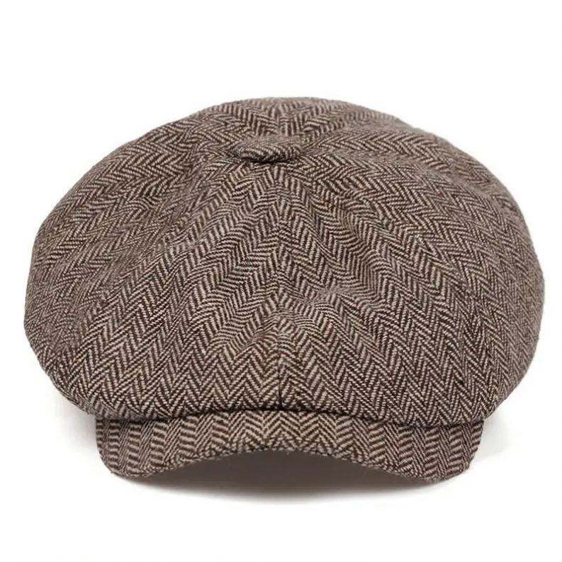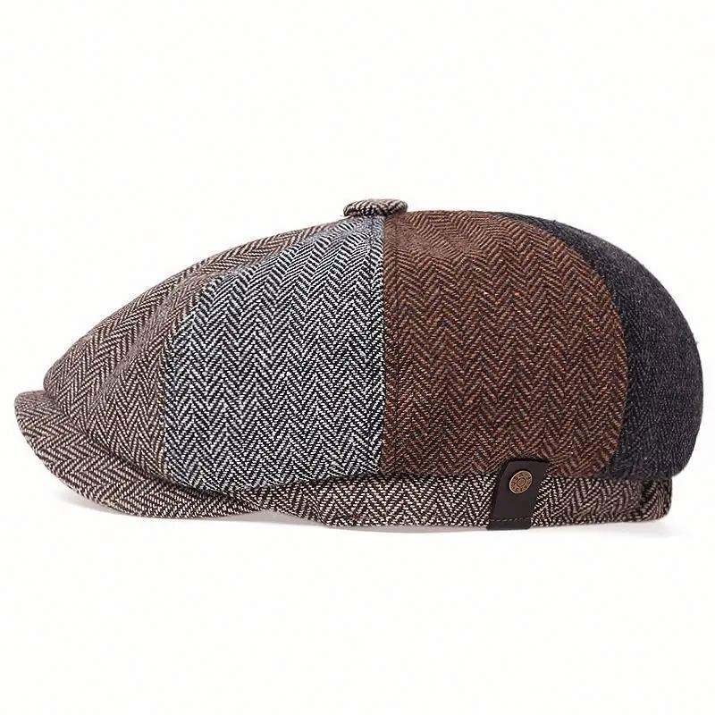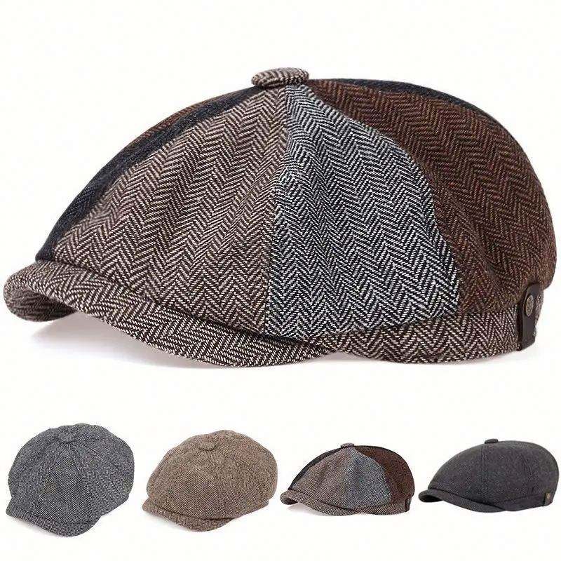 หมวกเบเร่ต์ผู้ชายลายก้างปลาหลายสีแบบขายส่ง 8 แผง สำหรับฤดูใบไม้ร่วงและฤดูหนาว