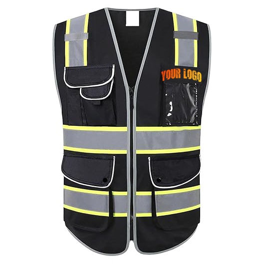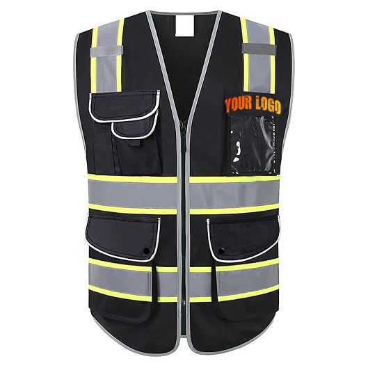 เสื้อกั๊กนิรภัยหลายกระเป๋าเครื่องแบบเสื้อกั๊กนิรภัยแบบสะท้อนแสงโลโก้ตามสั่งรุ่น ANSI Class 1 EN ISO Class 2