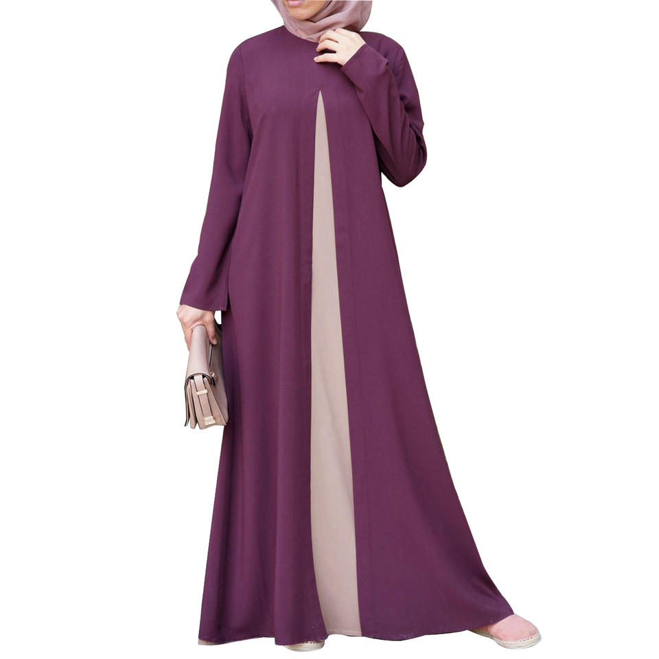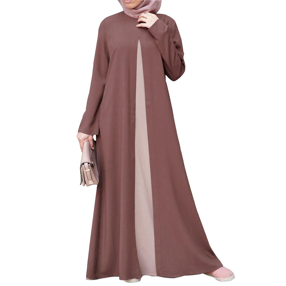 ชุดเดรสยาวแขนยาวผ้าชีฟองชุดอาบายาสำหรับสตรีมุสลิมผ้าชีฟองสีตัดกัน