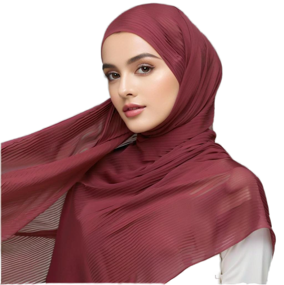 ผ้าคลุมศีรษะมุสลิมผู้หญิงแบบจีบสีพื้น ผ้าชีฟองแห้งเร็ว ผ้าคลุมผมยาว ขายส่ง