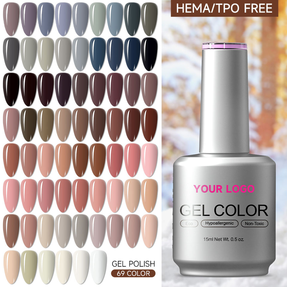 Wholesale Nail Painting Long-Lasting 69 Colors Autumn Winter Hema Tpo Free UV LED Gel Nail Polish Non-Toxic DIY Color Gel Polish