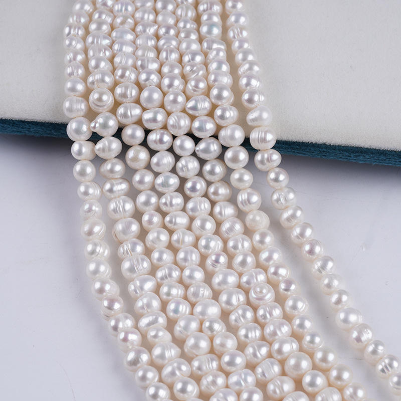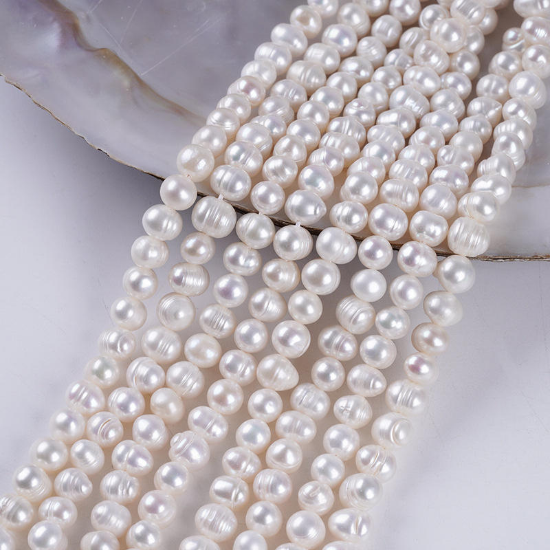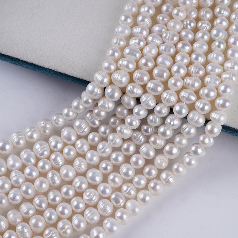 ไข่มุกน้ำจืดธรรมชาติขนาด 6-7 มม. สีขาว ร้อยเชือกแบบเจาะรู สำหรับทำเครื่องประดับ DIY สร้อยคอ รุ่นเวนชี ขายส่ง
