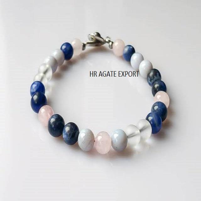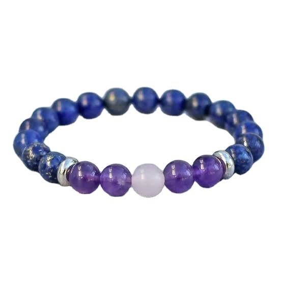 สร้อยข้อมือคริสตัลหินอาเกตธรรมชาติลูกปัด lapis Lazuli พร้อมอเมทิสต์และโรสควอตซ์8มม.
