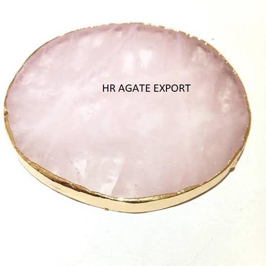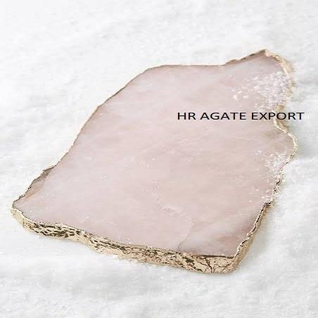 ถาดรองแก้วหินอาเกตธรรมชาติสีชมพูกุหลาบควอตซ์แผ่นคริสตัลขนาดใหญ่ลายทองประดับพลอยบำบัดฮวงจุ้ย