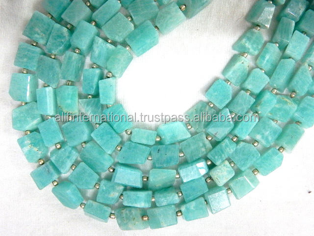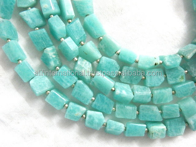 ลูกปัดนักเก็ตสีเขียวแบบเหลี่ยมเพชรพลอยจาก Amazonite ขนาด14นิ้วขนาด10-12มม.
