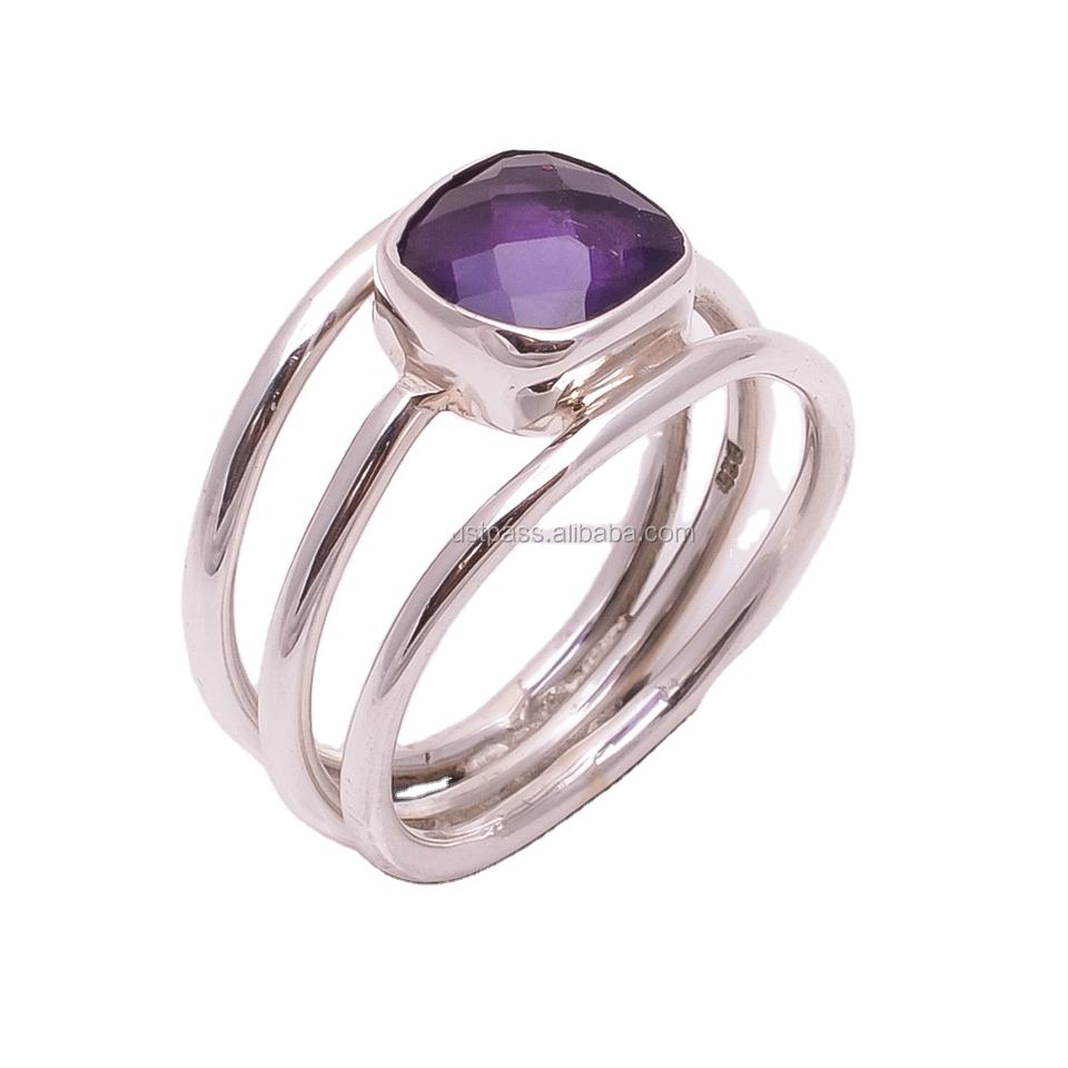 แหวนพลอยอเมทิสต์ธรรมชาติคลาสสิกขายส่ง เงินแท้ 925 ทำมือ เครื่องประดับงานแต่งงานอินเดีย งานหมั้น งานเลี้ยง งานพิธีต่างๆ