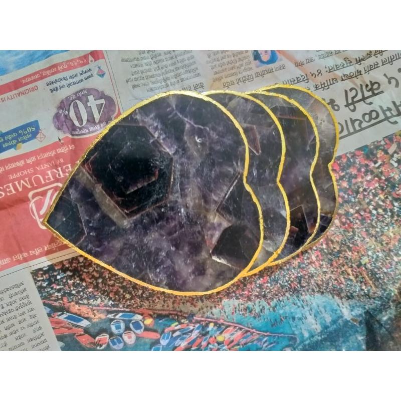 จานรองแก้วอเมทิสต์ธรรมชาติอุปกรณ์ครัวฮวงจุ้ยแผ่นรองแก้วปักพินตัวอักษรจีนอุปกรณ์ตกแต่งบ้าน
