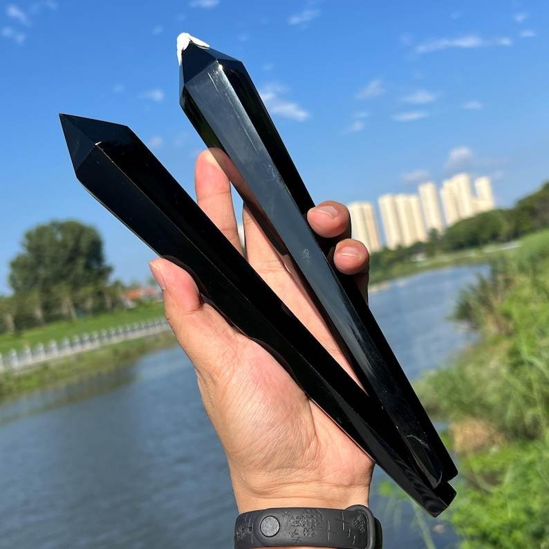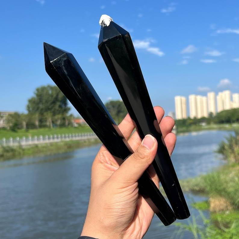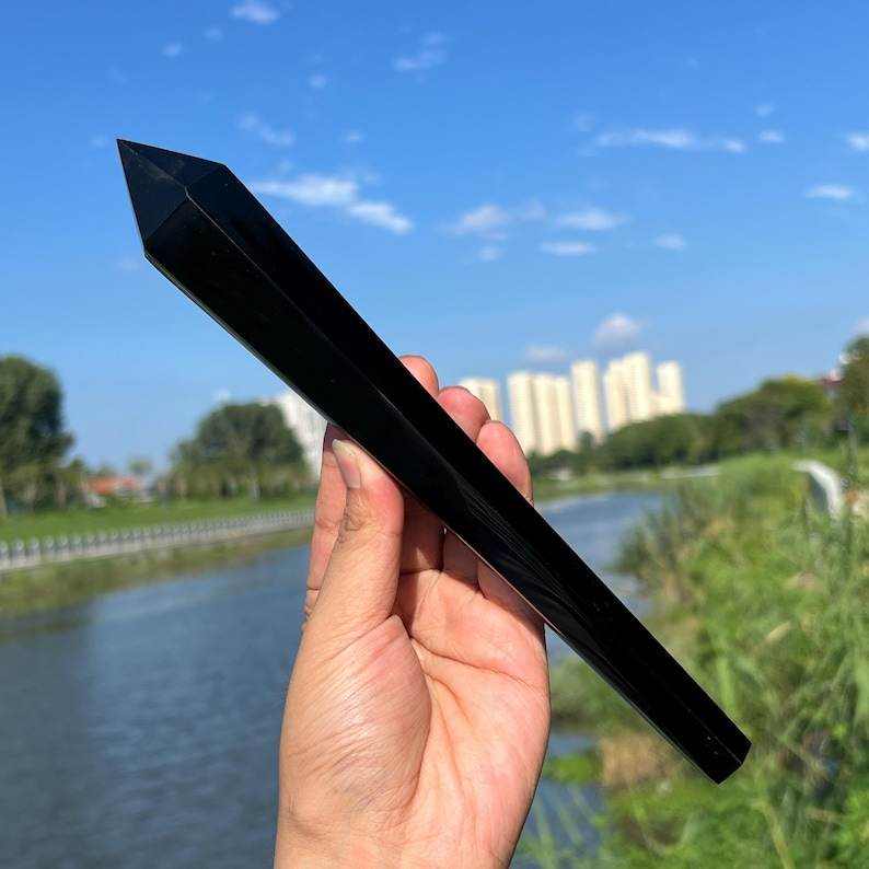 แท่งคริสตัลออบซิเดียนสีดำธรรมชาติขายส่ง ขนาด 6-8 นิ้ว ขัดเงา ใช้เป็นเครื่องรางเสริมความรัก พลังบำบัด รีกิ สร้างพลังงาน หินสำหรับทำสมาธิ