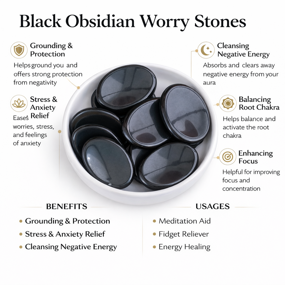 Product name:Black Obsidian Crystal Worry Stone Thumb