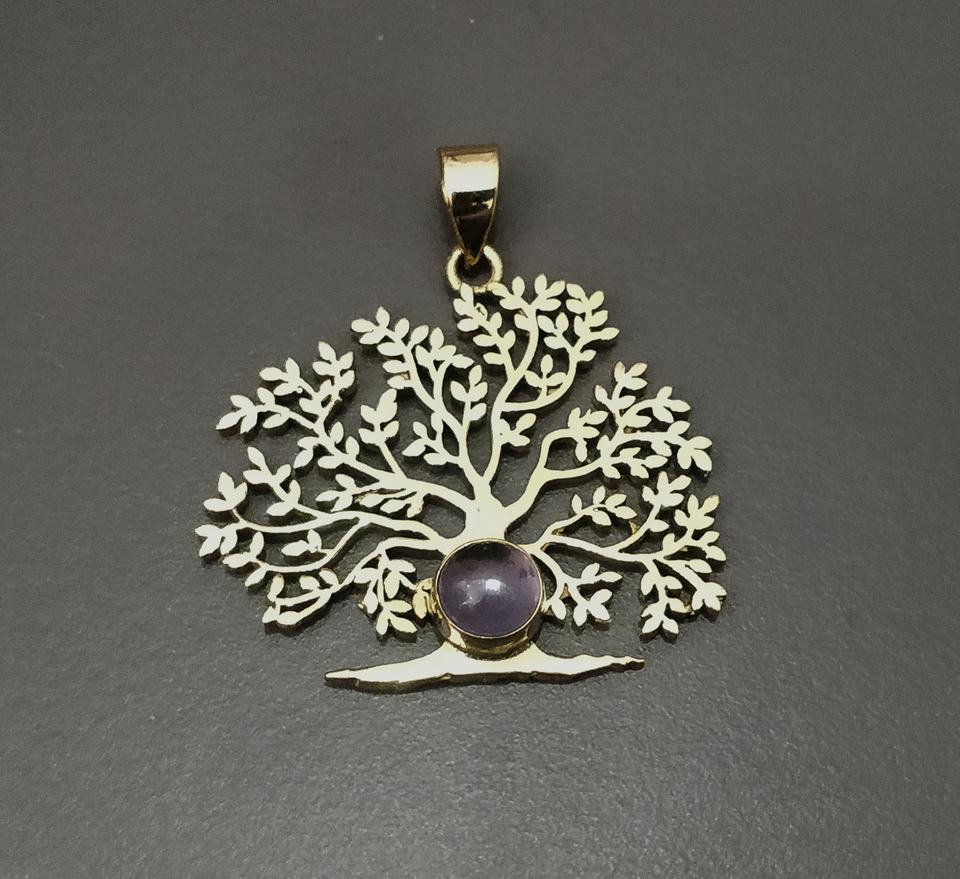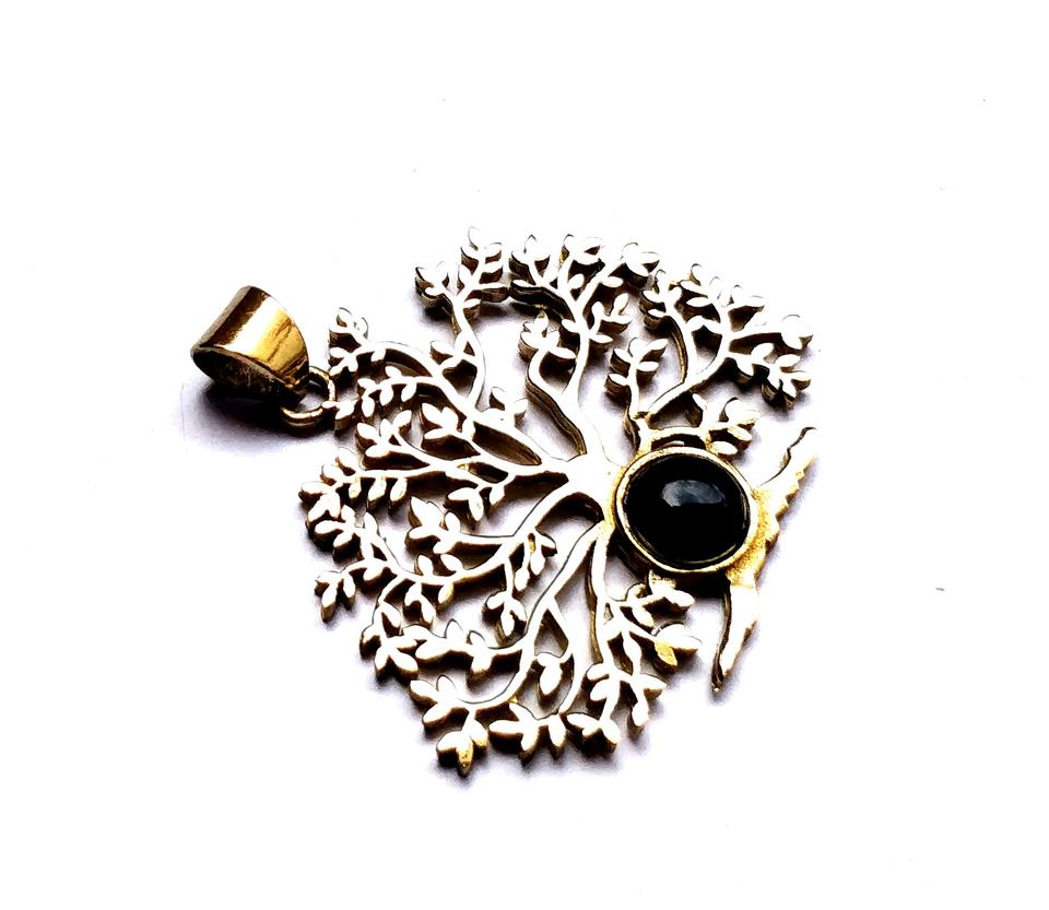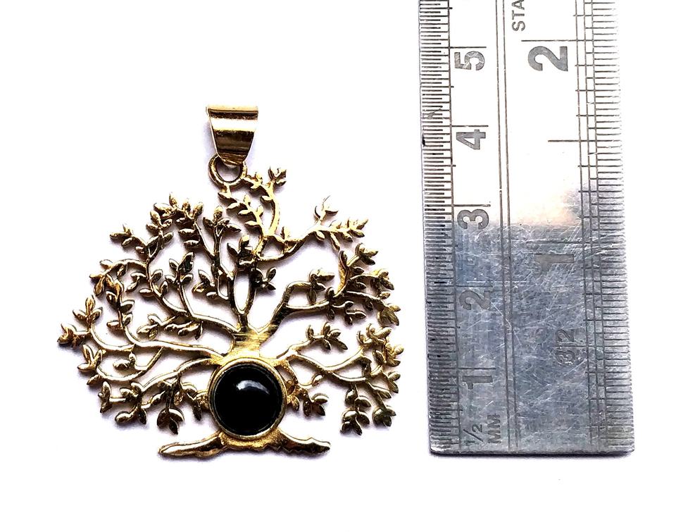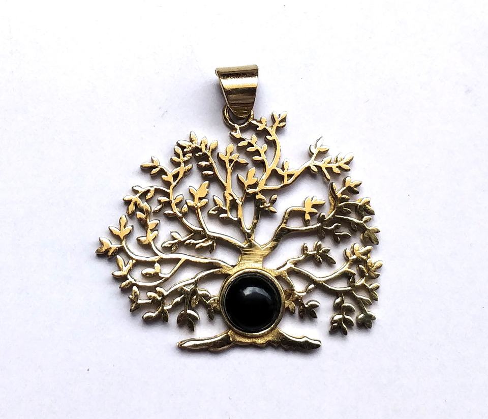 สร้อยคอจี้หินโอนิกซ์สีดำธรรมชาติต้นไม้ทองทองเหลืองเครื่องประดับจี้อัญมณีแห่งชีวิต