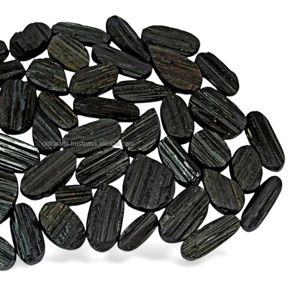 หินควอตซ์บำบัดแบบแบนสีดำธรรมชาติอัญมณีทรงหลังเรียบ