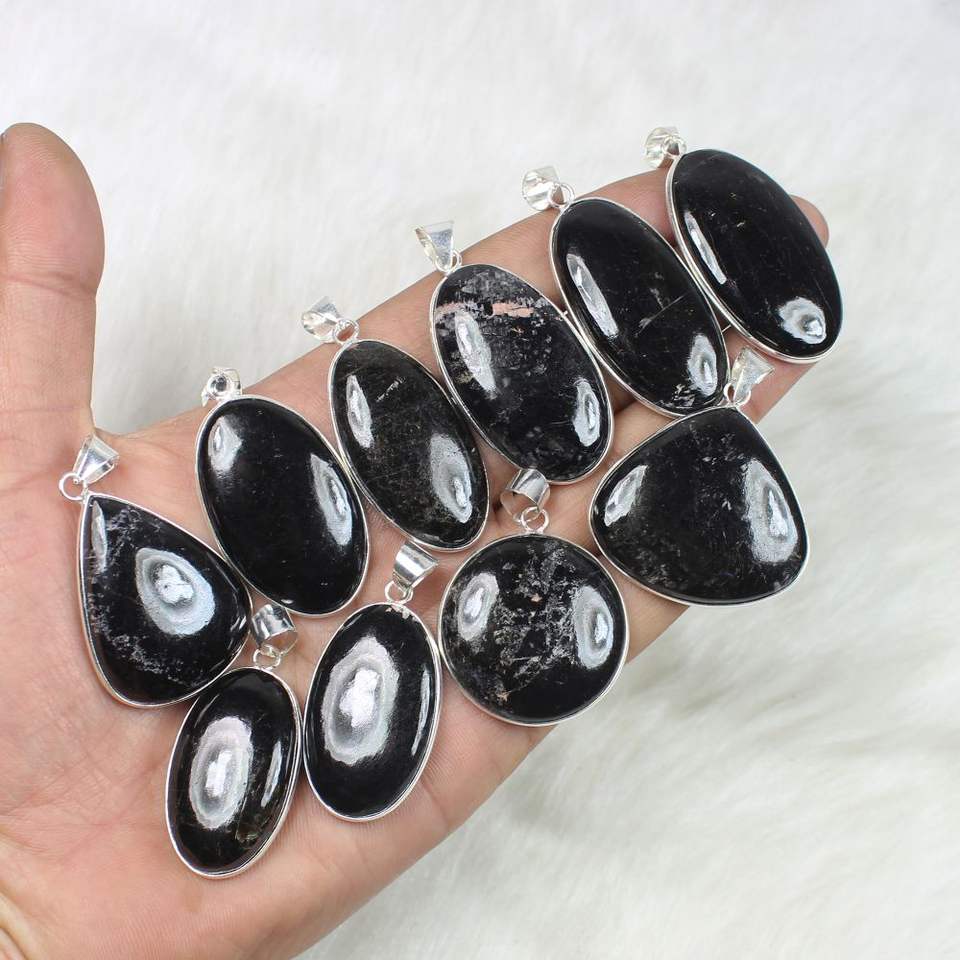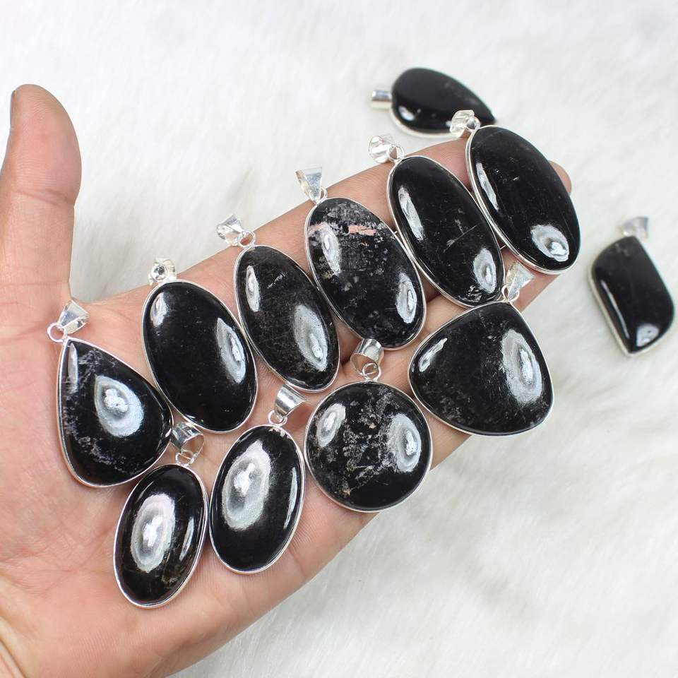Black tourmaline quartz silver plated pendants