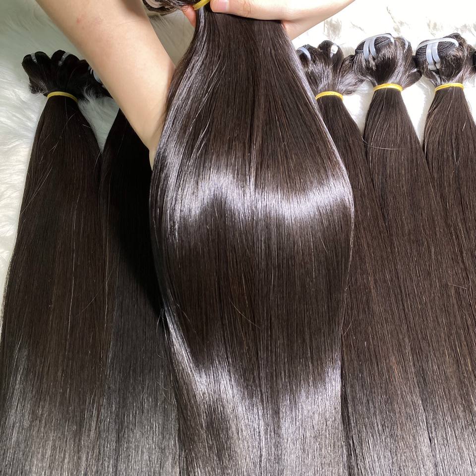 ผมต่อแบบตรงกระดูกเวียดนามสีดำธรรมชาติ6-40นิ้วเครื่องจักรยาวสองชั้นทนทาน