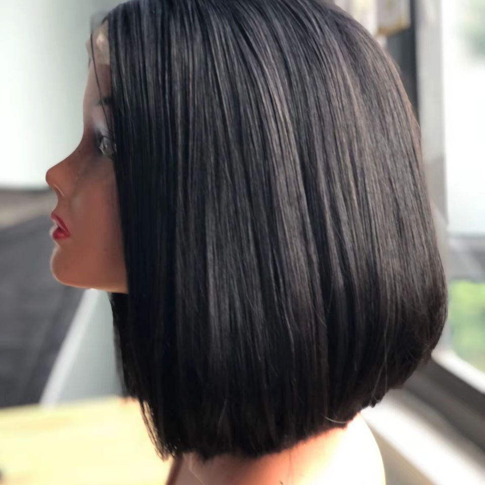 วิกผมเรมี่สีดำธรรมชาติบราซิล6X6นุ่มตรงสำหรับปิดลูกไม้บ๊อบวิกผมธรรมชาติขนาดเล็ก