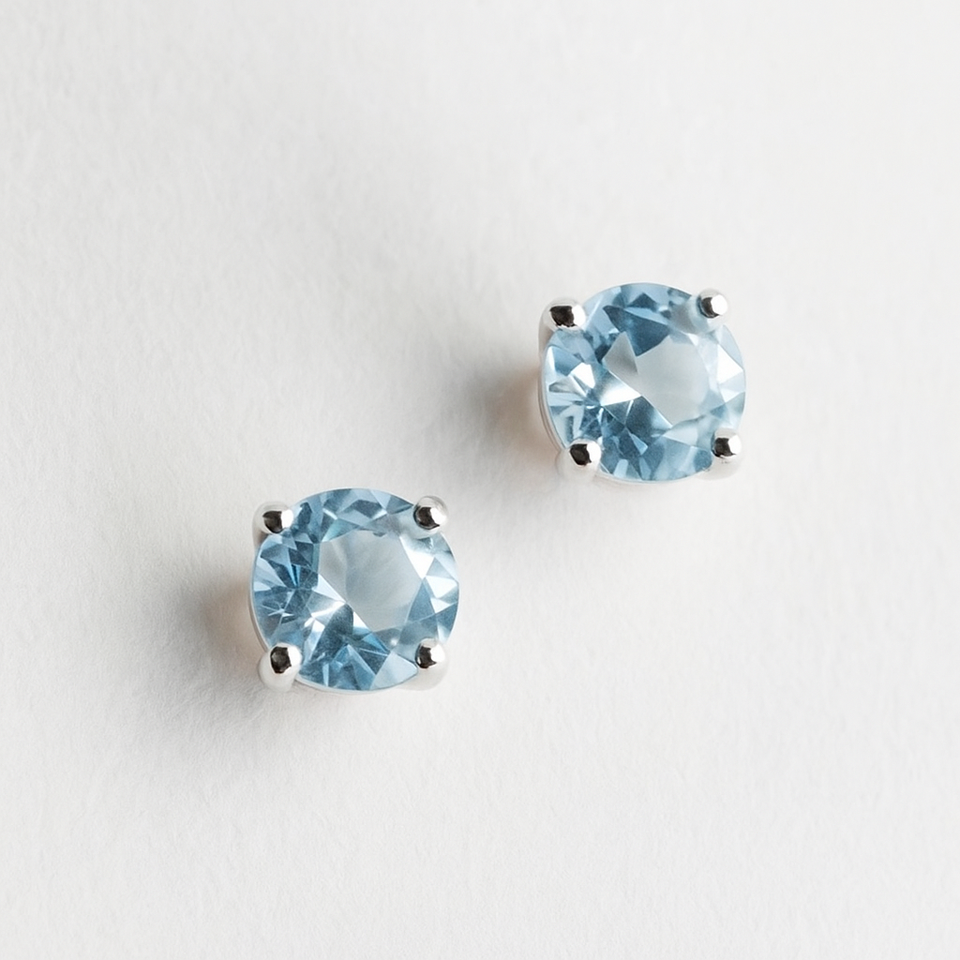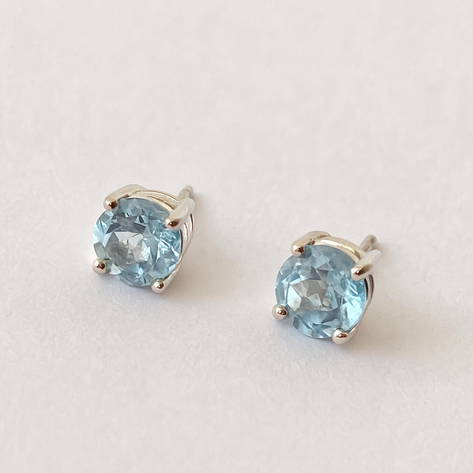 ต่างหูพลอยบลูโทแพซธรรมชาติขายส่ง ชุบโรเดียม เงินแท้ เหมาะสำหรับงานหมั้น งานแต่งงาน งานฉลองครบรอบ งานเลี้ยง