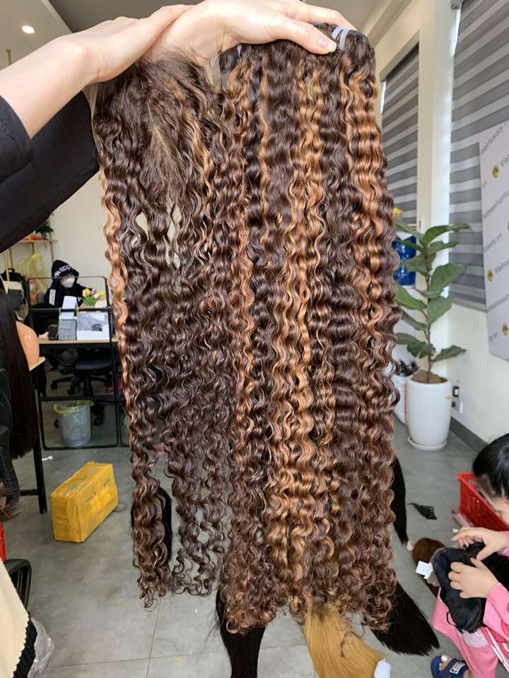 ผมแท้เวียดนามสีน้ำตาลธรรมชาติแบบขายส่ง แบบเส้นเดียว แบบถักสองชั้น แบบหยิกฟู วิกผมลูกไม้แบบแอฟโฟร ขนาด 8-32 นิ้ว แบบเป็นมัด