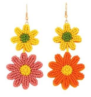 ลูกปัดหินแกะสลักธรรมชาติรูปดอกไม้ ลูกปัดเว้นวรรคหลากสีสัน เครื่องประดับหูสำหรับเด็กผู้หญิง ราคาดีที่สุดจากอินเดีย