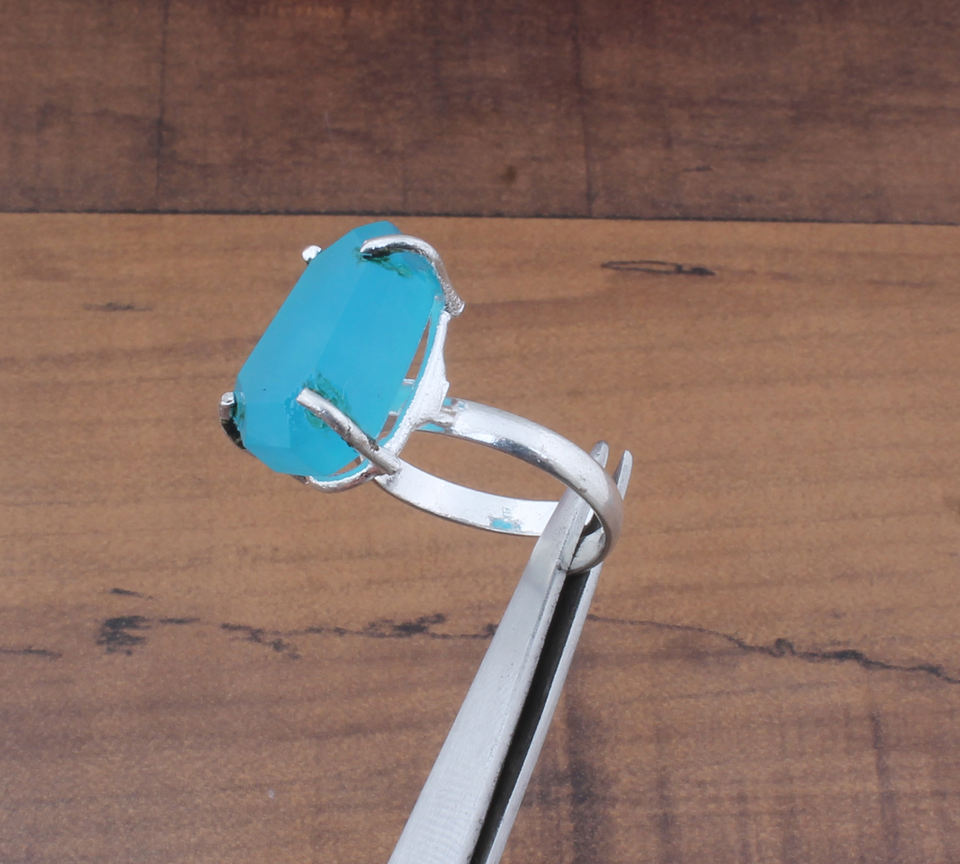 แหวนแต่งงานสำหรับผู้หญิงประดับพลอยสีเขียวใสแบบธรรมชาติ ชุบเงินแท้ ขายส่ง
