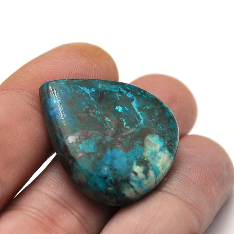 หินอัญมณีคริสโซโคลลาทรงหลังเบี้ยธรรมชาติรูปทรงลูกแพร์ไม่เหมือนใครสำหรับทำเครื่องประดับสีฟ้าและสีเขียวหลากหลาย