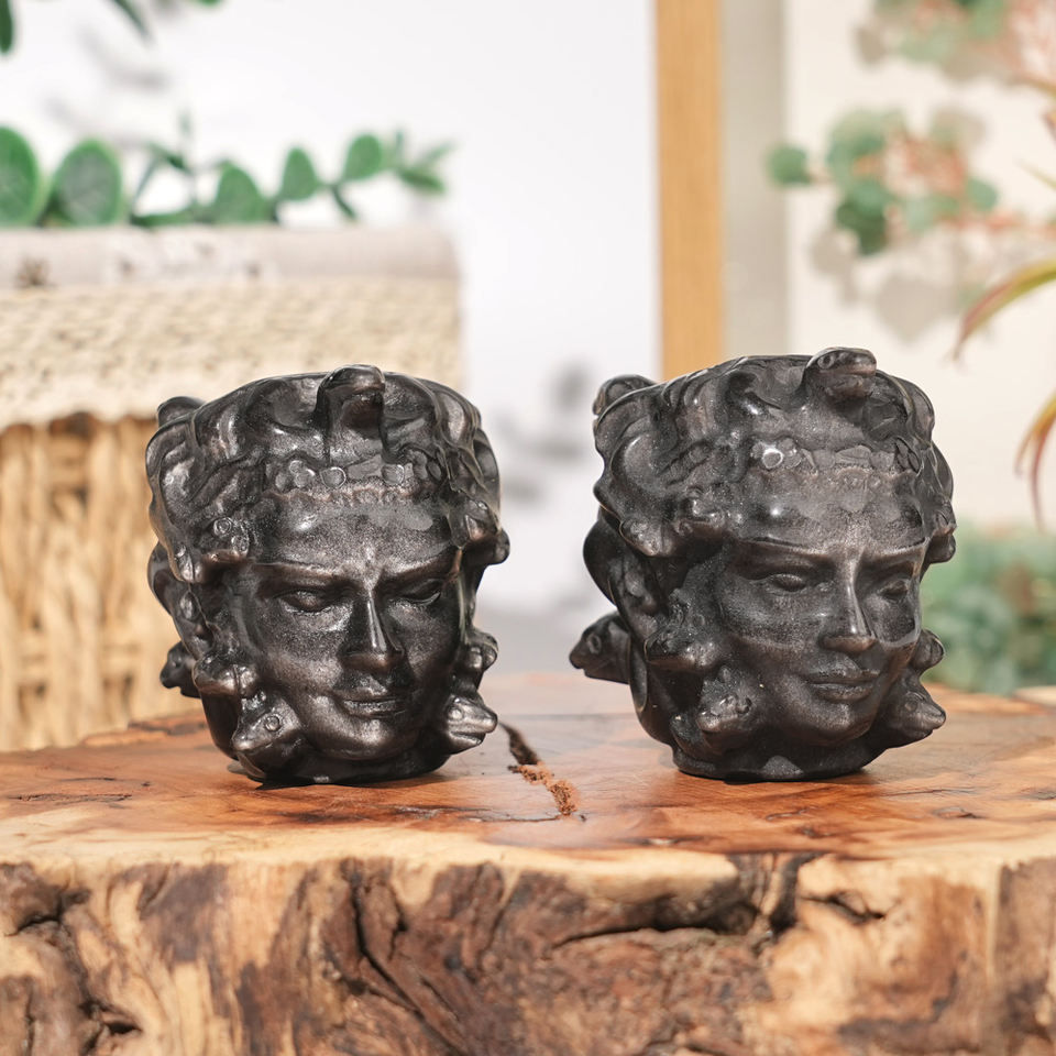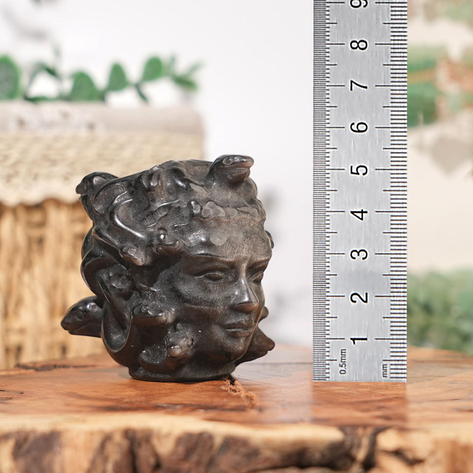 หัวเมดูซ่าแกะสลักจากหินออบซิเดียนสีเงิน