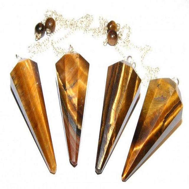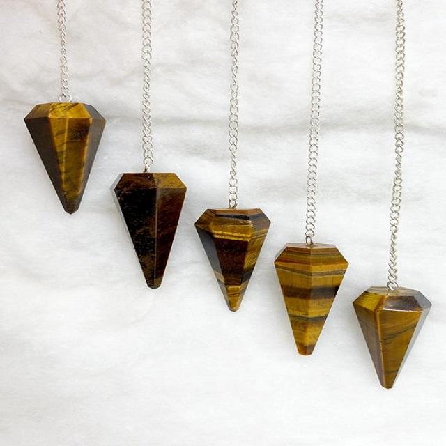 Wholesale Natural Crystals Tiger eye Faceted Cone Dowsing Pendulum For Reiki Healing