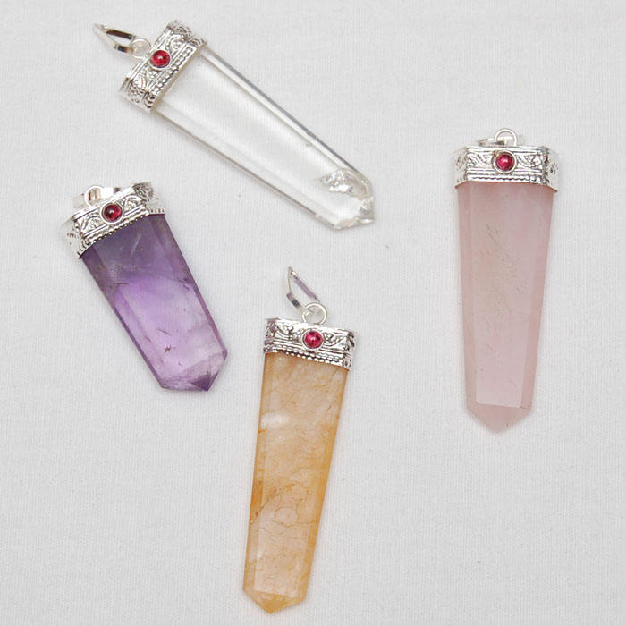 ขายส่งที่กำหนดเองธรรมชาติอัญมณีคริสตัลรักษาผสมพลอยรักษาดินสอแบนจี้สำหรับเครื่องประดับ