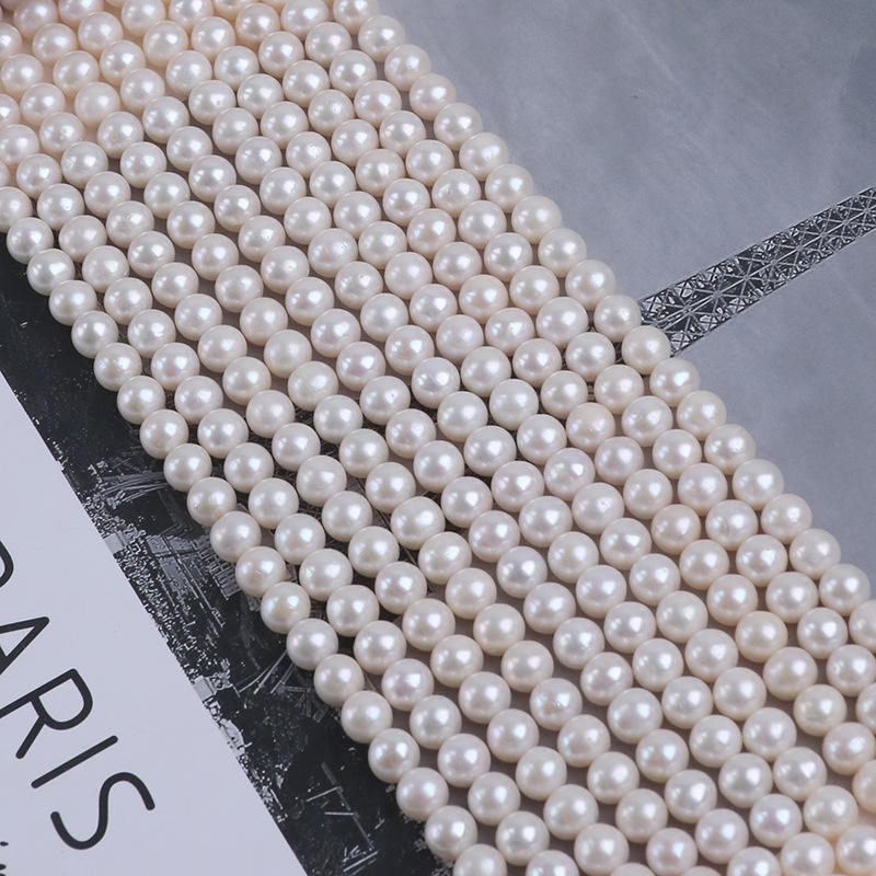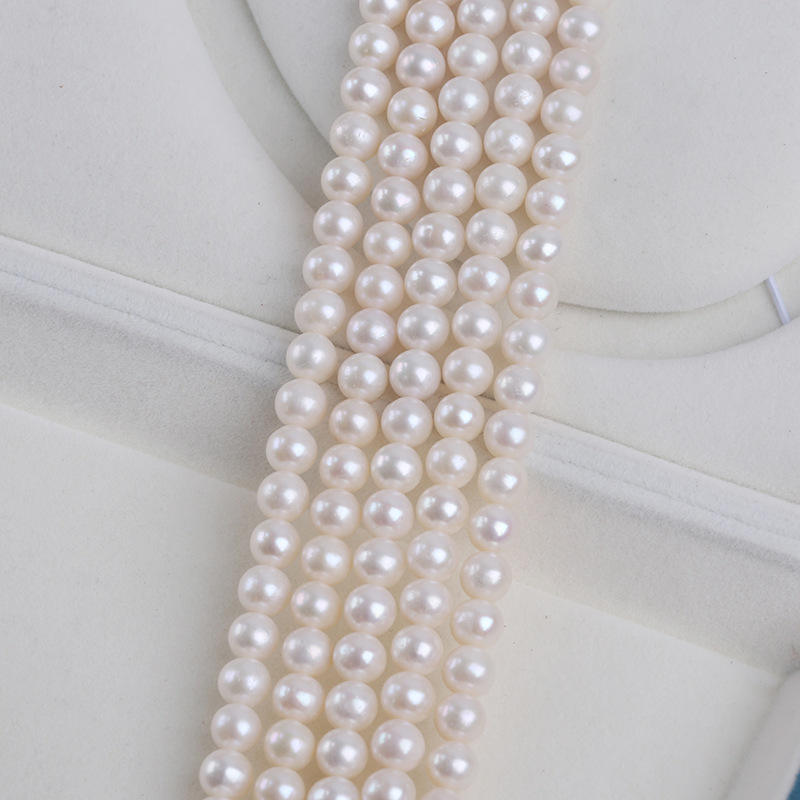 ไข่มุกน้ำจืดธรรมชาติขนาด 7.5-8 มม. ขายส่ง แสงเงาสวยงาม สำหรับทำสร้อยคอ DIY แบบกึ่งสำเร็จรูป