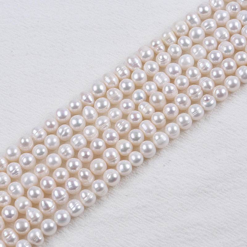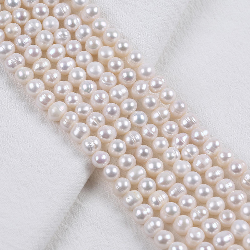Wholesale Natural Freshwater 7-8mm White Freshwater Pearls Punch Semi-Finished DIY Bracelets and Necklaces in Zhuji