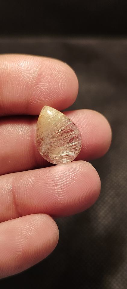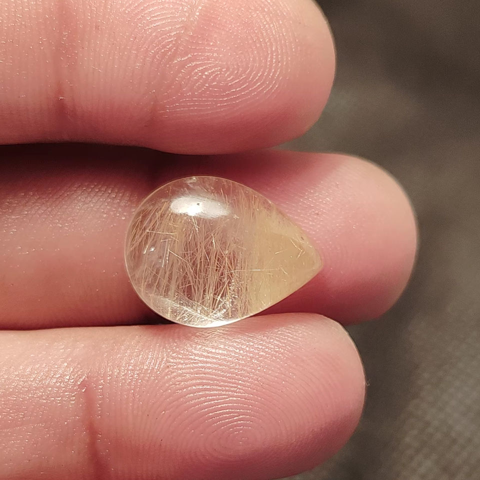 คริสตัลควอตซ์ธรรมชาติขายส่ง ควอตซ์รูไทล์สีทองทรงลูกแพร์ คริสตัลคาโบชอง งานฝีมือ ทำแหวนเครื่องประดับ DIY