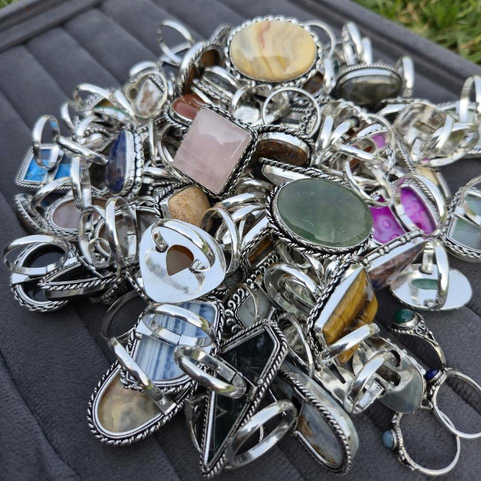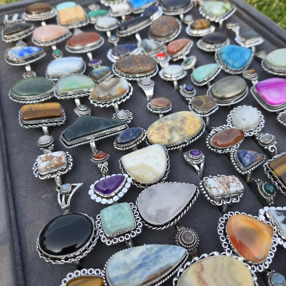 แหวนพลอยธรรมชาติ JT-036 จาก Wholesale Jewelry Town Inn แหวนเงินชุบสำหรับทุกเพศ ดีไซน์แบบฝังขอบทองเหลือง สไตล์คลาสสิก โบโฮ ฮิปปี้ ชิ้นใหญ่
