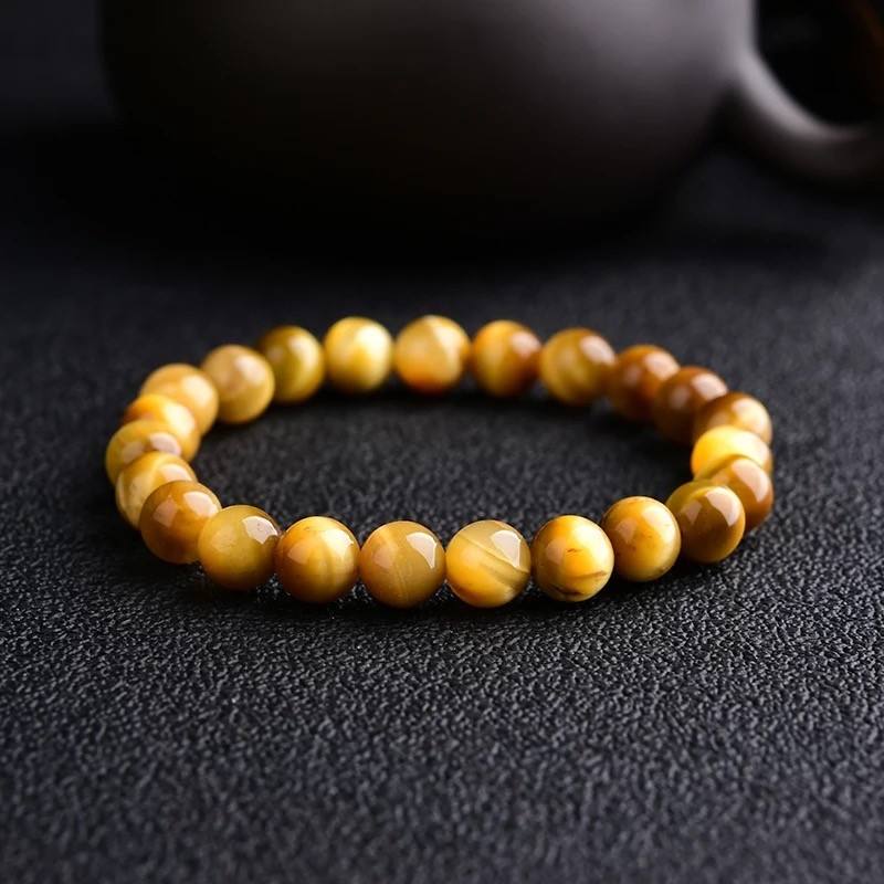 สร้อยข้อมือตาเสือสีทองธรรมชาติลูกปัดทรงกลมแบบหลวมเครื่องประดับหินธรรมชาติ