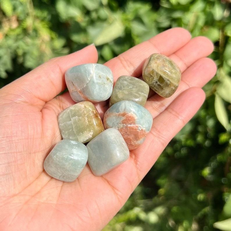 Wholesale Natural High Quality Handmade 15-30mm Polished Etched Tumbled Muntaha Agate Aquamarine Crystal Customized Shapes Home