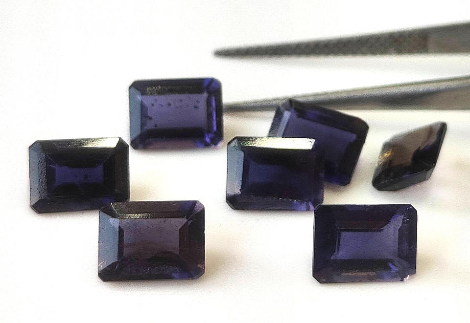 พลอยไอโอไลต์ธรรมชาติทรงแปดเหลี่ยมเจียระไนแบบเหลี่ยมเพชรพลอย ขนาด 3x5 มม.-7x9 มม. สีฟ้ามีประกายสี สำหรับทำเครื่องประดับ ขายส่ง