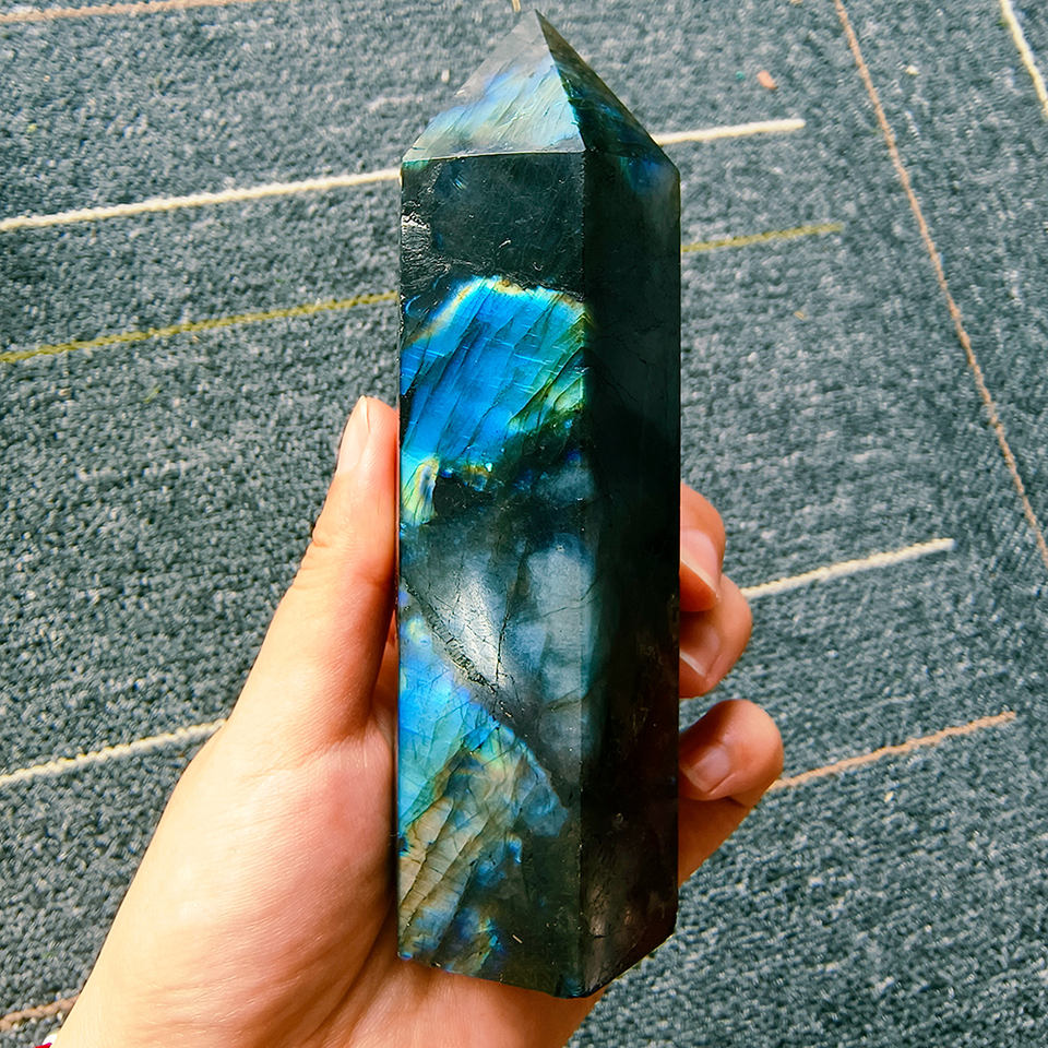 หอคอยหินคริสตัลขนาดใหญ่ไฟสีฟ้าประกายลาบราดอไรต์ธรรมชาติสำหรับเป็นของขวัญในการตกแต่ง